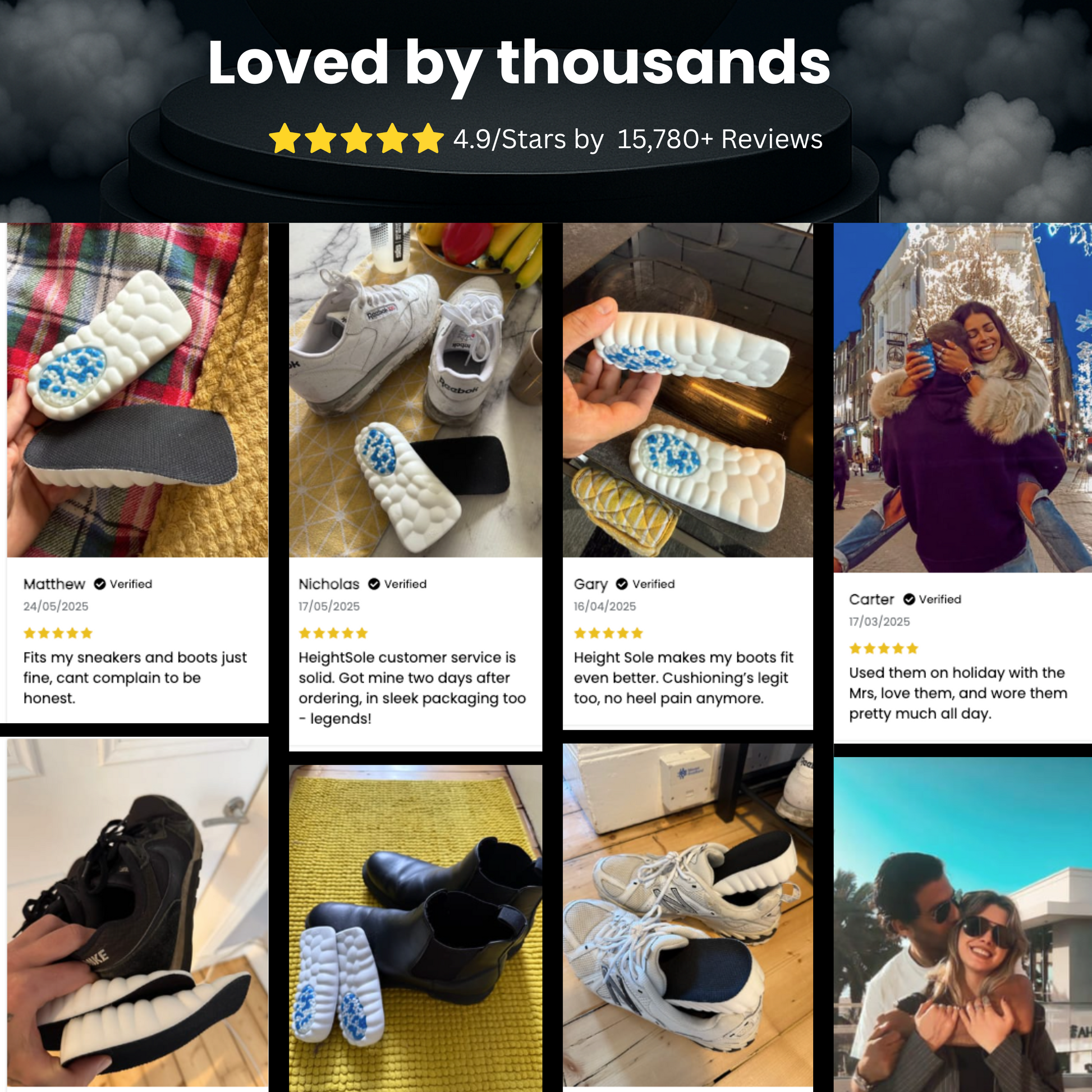HeightSole™ gives you a subtle lift — but the real impact is in how you show up. Better posture, sharper presence, and more confidence in every room (and on every date). When you feel taller, you act bolder. Simple.