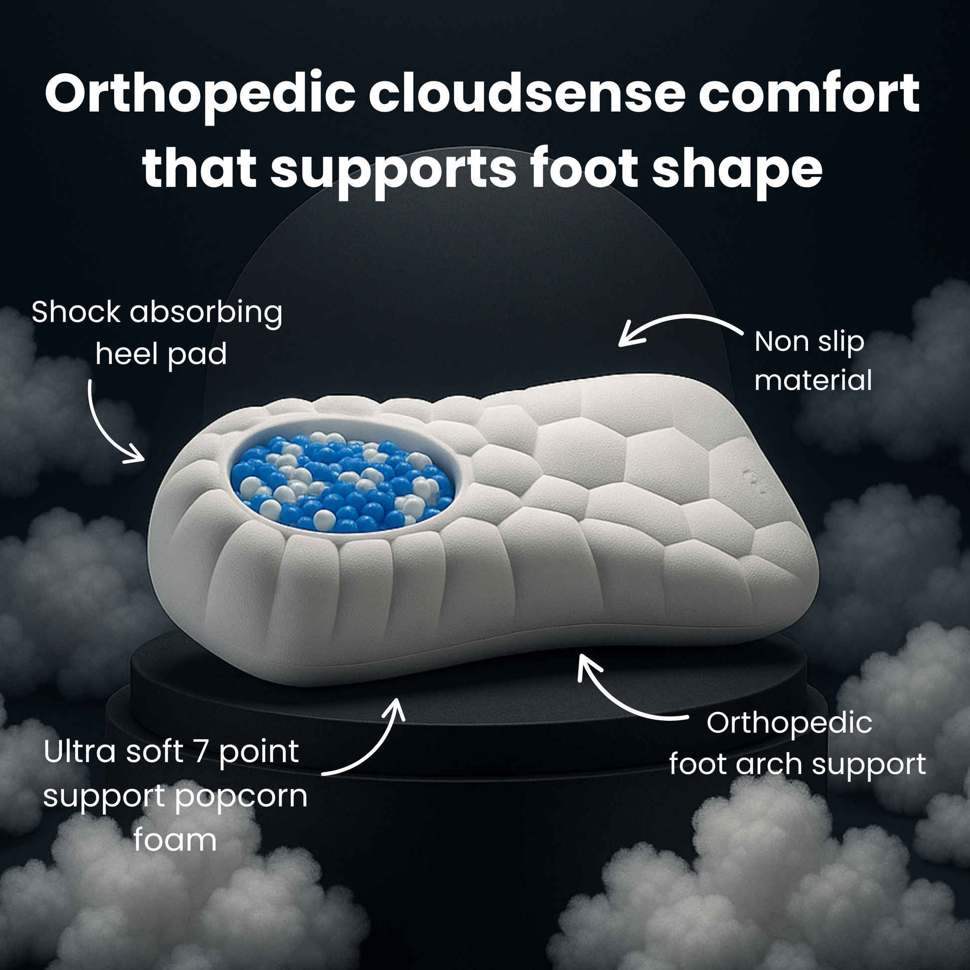 CloudSense Cushioning - Shock-absorbing, arch support, all-day comfort.